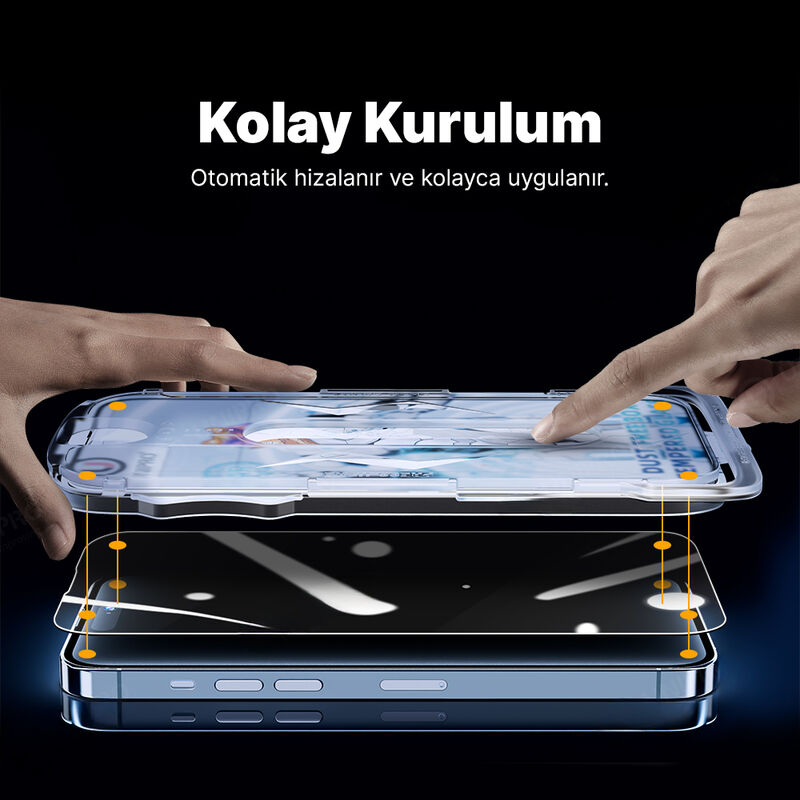 Apple iPhone 14 Plus uyumlu Zebana Kolay Takma Aparatlı Cam Ekran Koruyucu, ekranınızı çizik ve darbelere karşı güvenle korur.