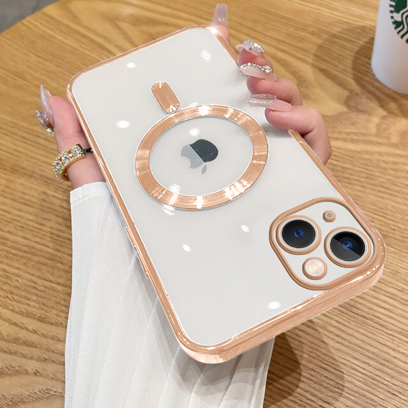 Apple - iPhone 14 Plus Zebana Glint Silikon Kılıf (Kablosuz Şarj Destekli) - Rose Gold