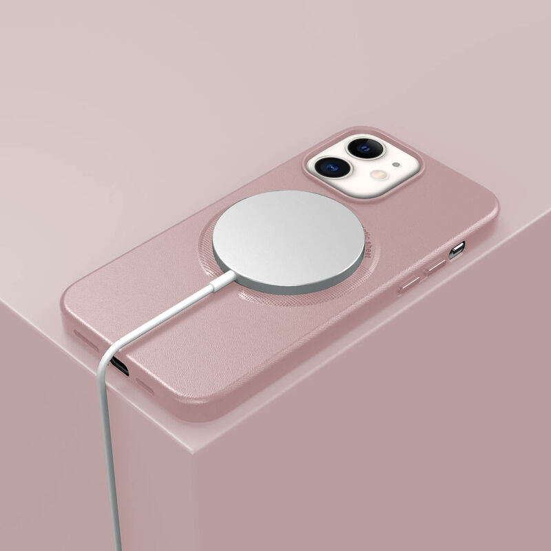Apple - iPhone 11 Zebana Kablosuz Şarj Destekli Özellikli Lansman Deri Kılıf - Pudra Pembesi