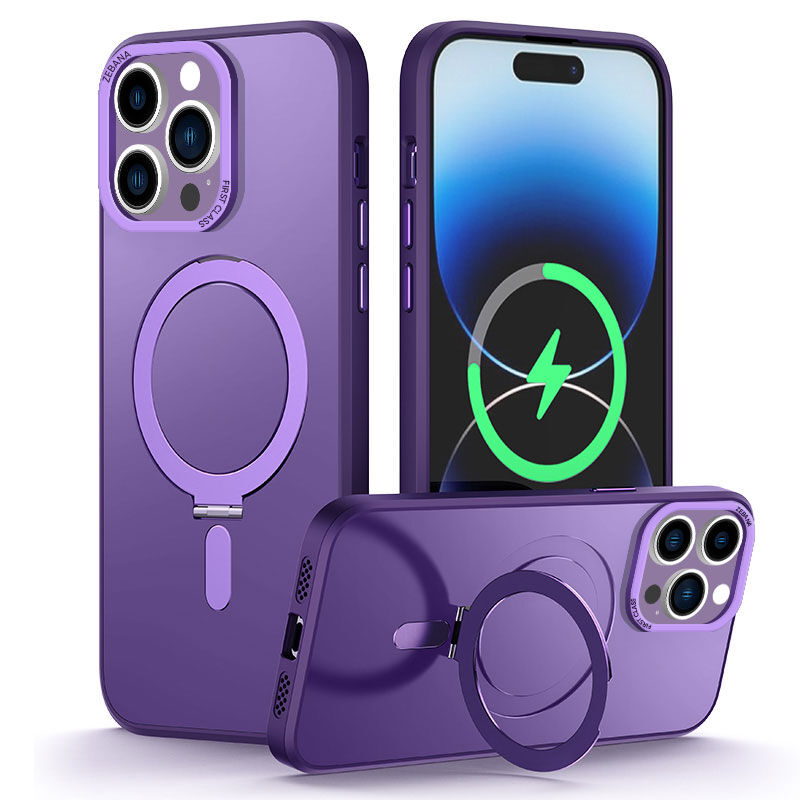 Apple - iPhone 16 Pro Zebana First Class Standlı Silikon Kılıf Kablosuz Şarj Destekli - Derin Mor
