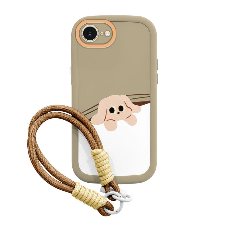 Apple - iPhone 16e Zebana El Bilekli Cat and Puppy Silikon Kılıf - Açık Kahverengi