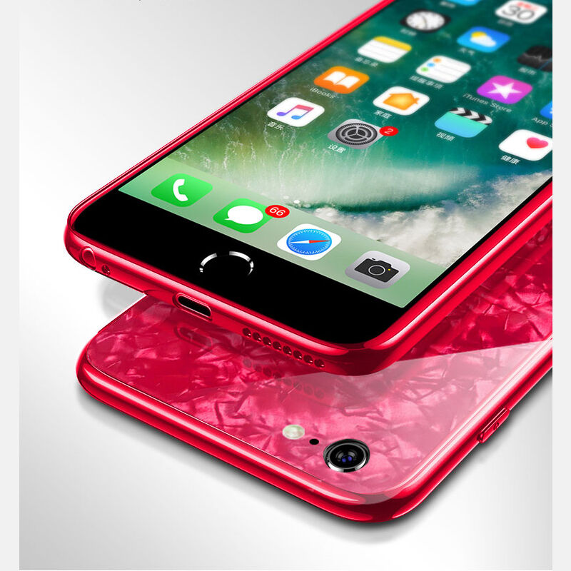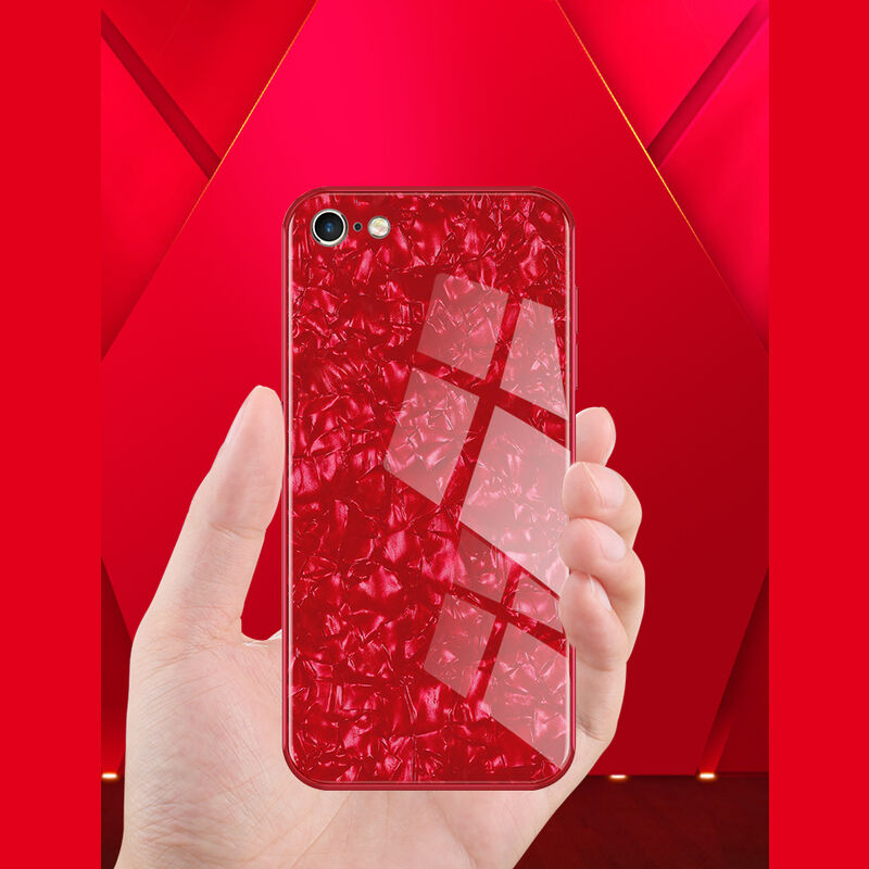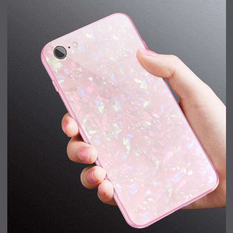 Apple - iPhone 6S Marbel - Silikon Kenar Tempered Glass Kılıf - Pembe