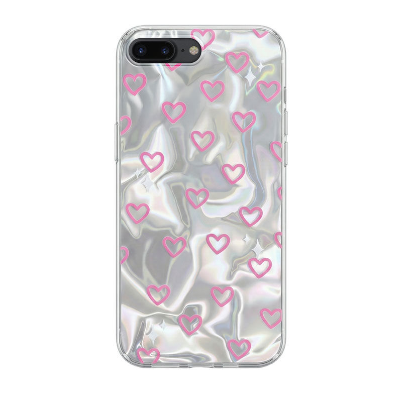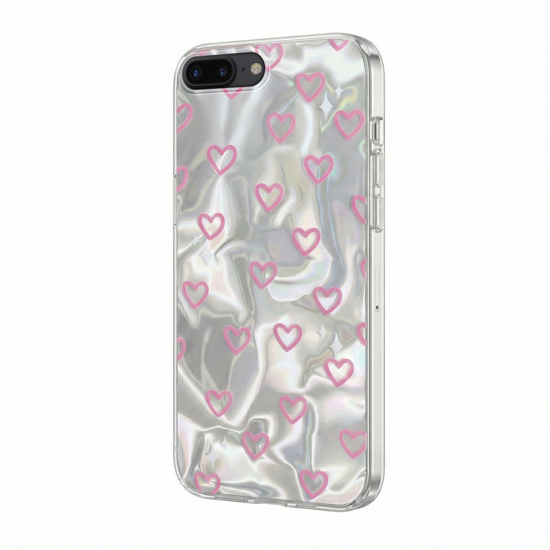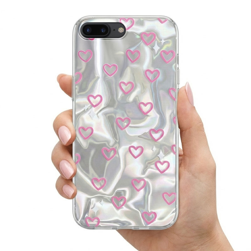 Parlak arka yüzeyi üzerinde sevimli kalp işlemeleri ile telefonuna aşk kat.