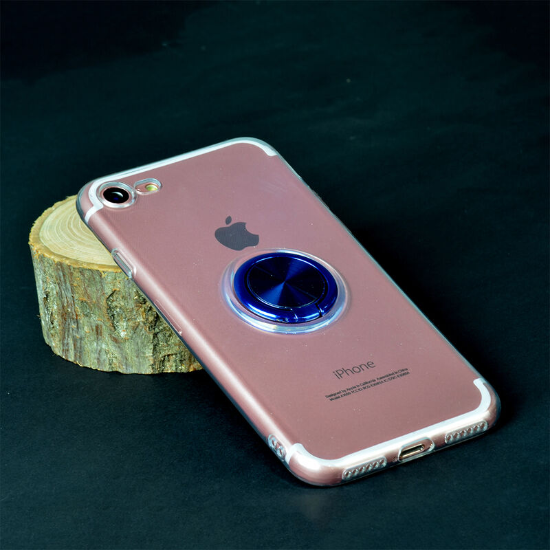 Apple - iPhone 7 Şeffaf Yüzüklü Silikon Kılıf - Mavi