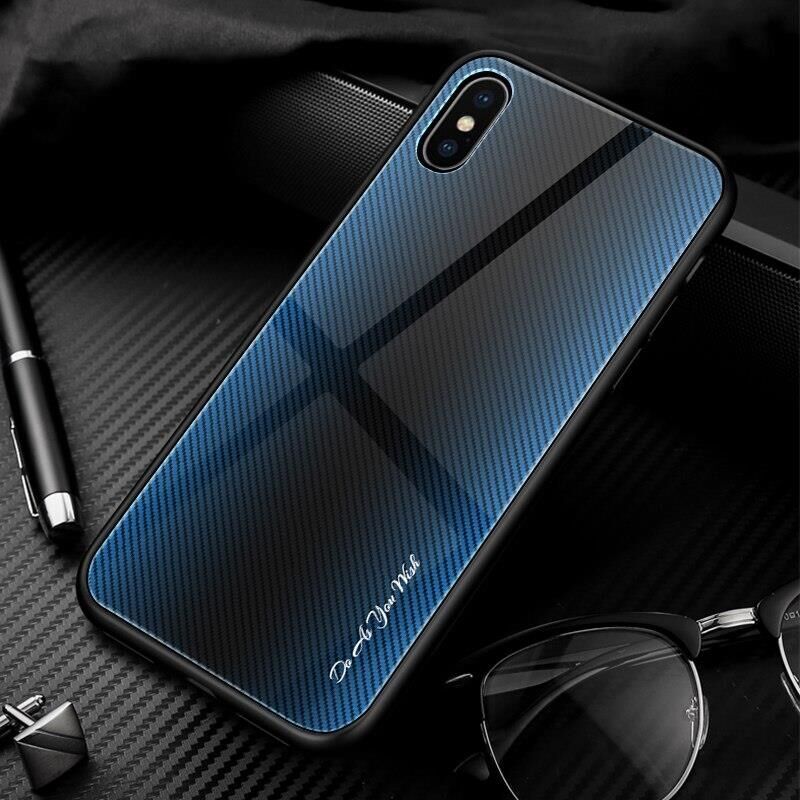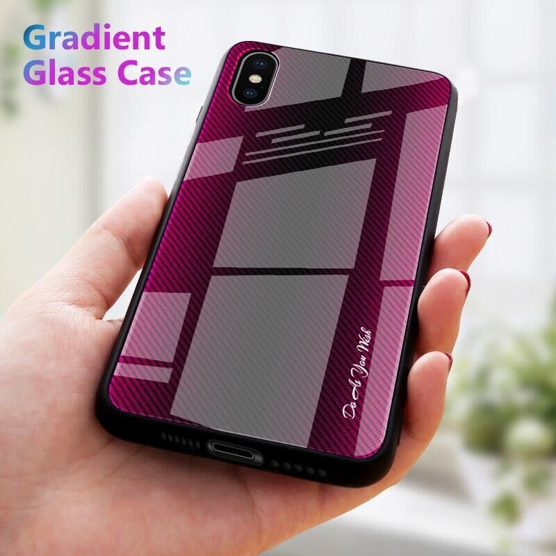 Apple - iPhone X Silikon Kenar Colorful Gradient Temperli Cam Kılıf - Mavi