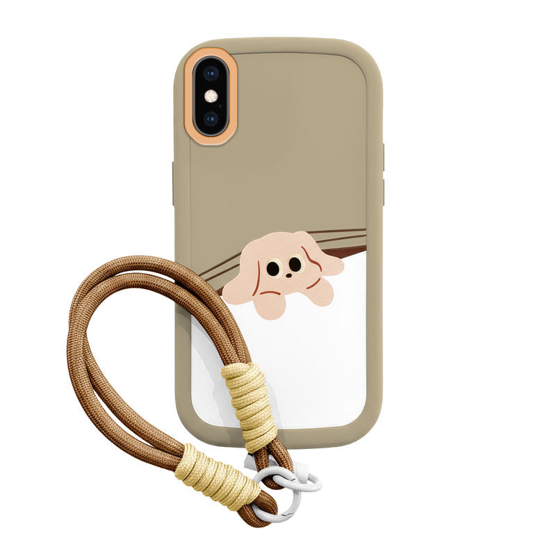 Apple - iPhone X Zebana El Bilekli Cat and Puppy Silikon Kılıf - Açık Kahverengi