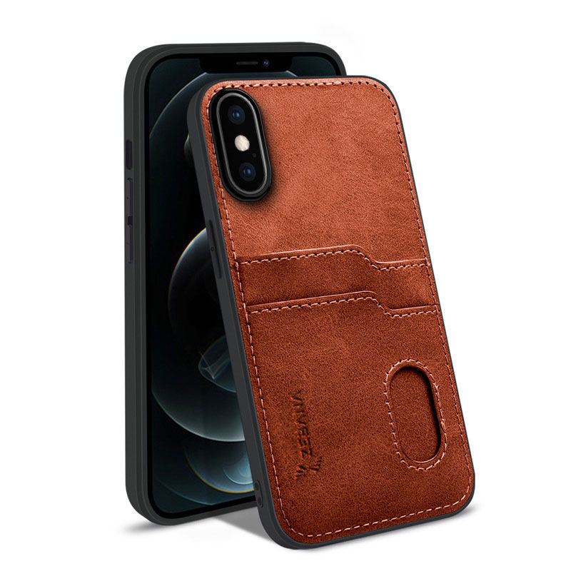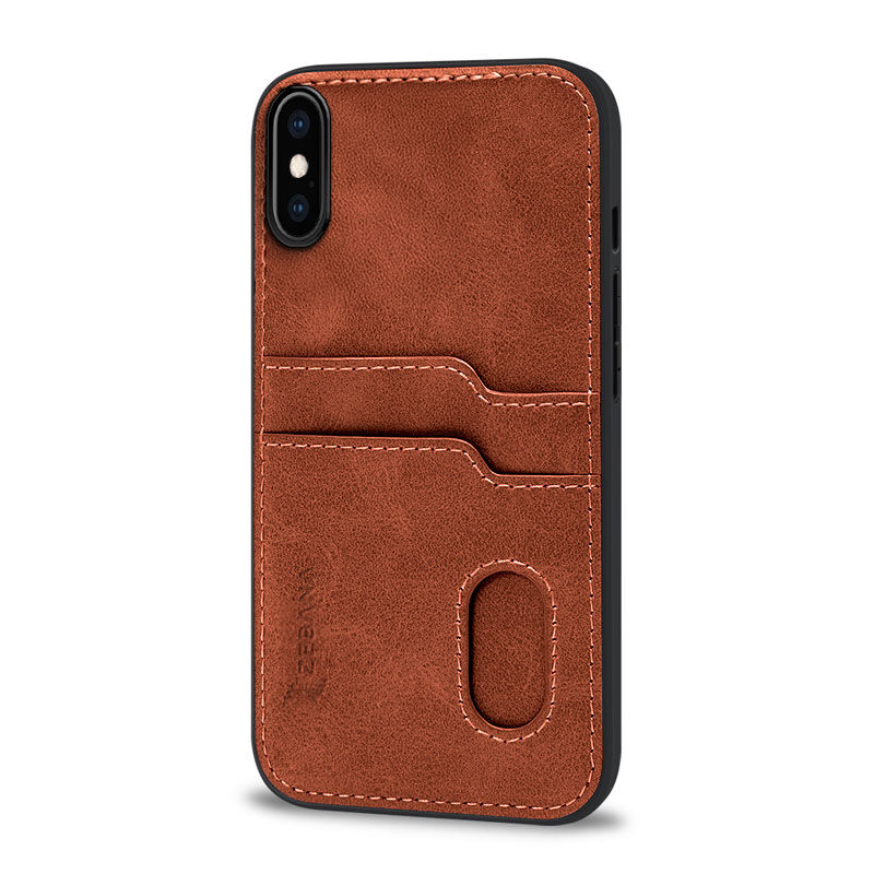 Apple - iPhone XS Zebana Kartlıklı Lüx Deri Kılıf - Kahverengi