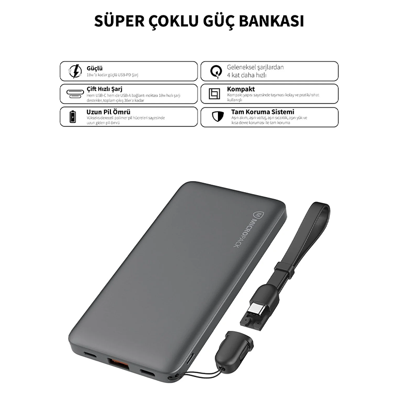Çoklu giriş-çıkış ve 18 W'a kadar hızlı şarj özelliği ile harika bir deneyim sunar.