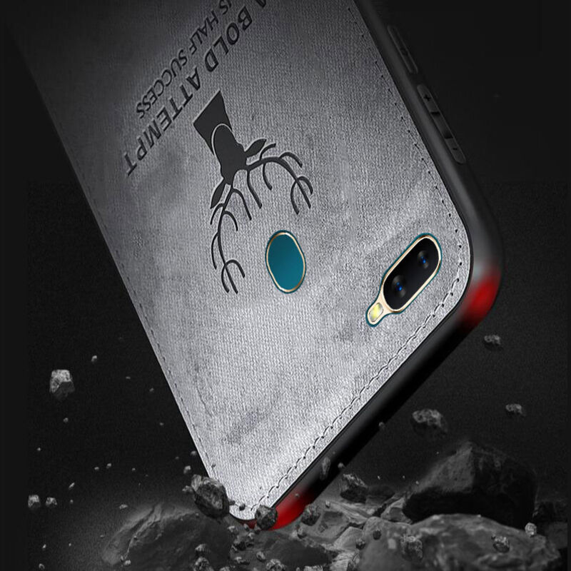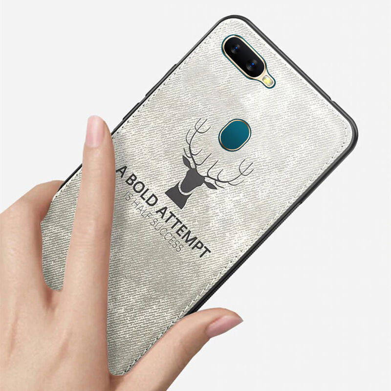 Oppo - A5S Silikon Kenar Kumaş Kılıf - Gri
