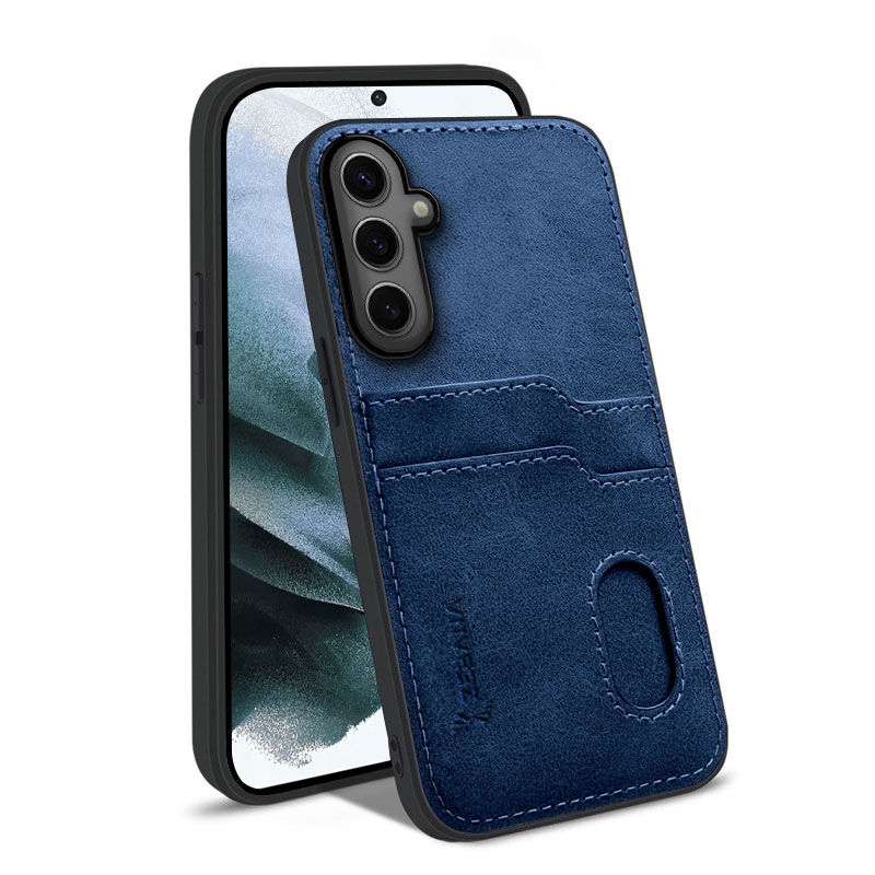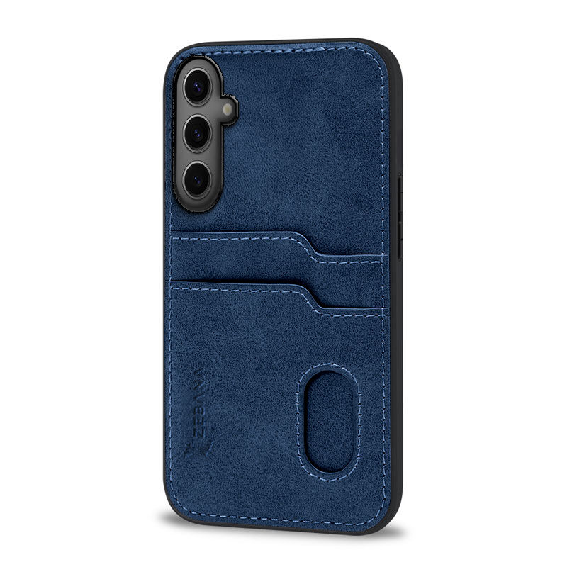 Samsung - Galaxy S24 FE Zebana Kartlıklı Lüx Deri Kılıf - Lacivert