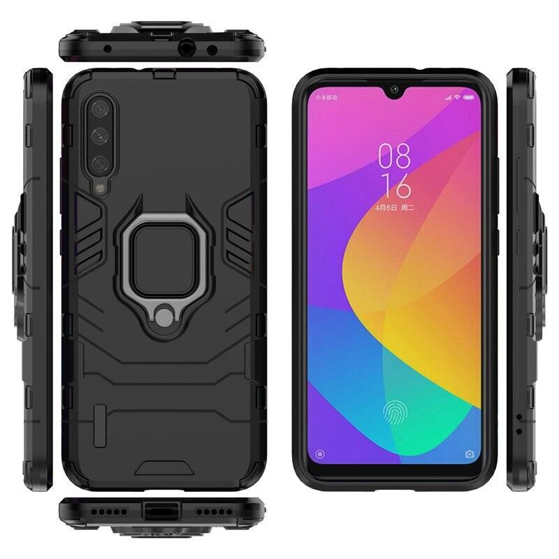 Xiaomi - Mi A3 Verüs Yüzüklü Silikon Kenar Kılıf - Siyah