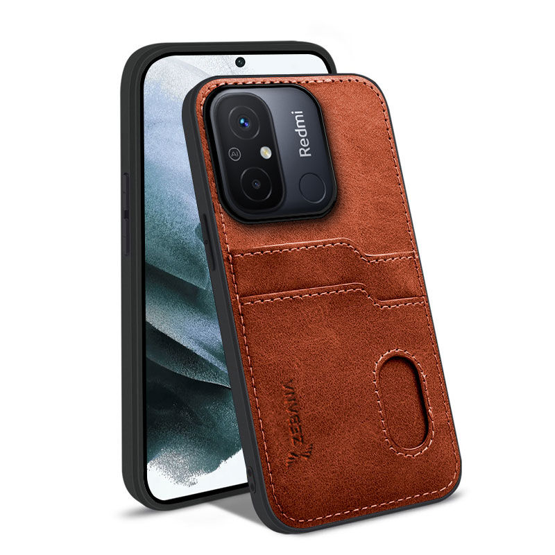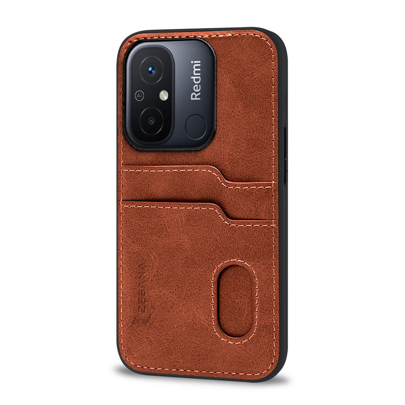 Xiaomi - Redmi 12C Zebana Kartlıklı Lüx Deri Kılıf - Kahverengi