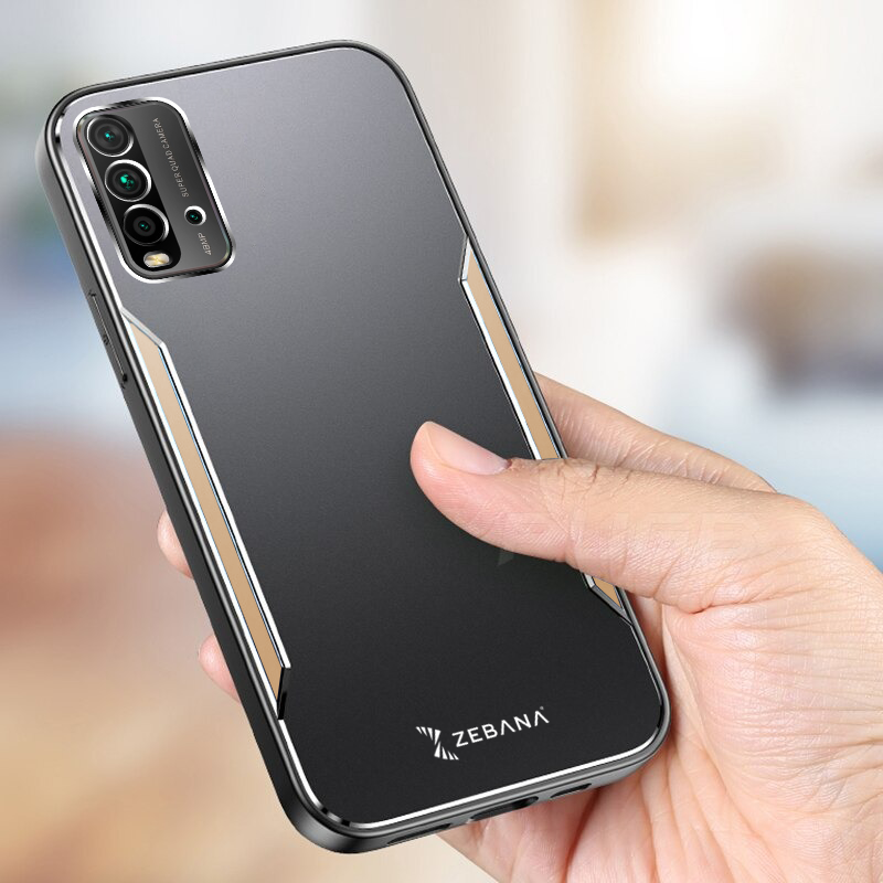 Xiaomi - Redmi 9T Zebana Metal Mitras Kılıf (Silikon Kenar) - Gold