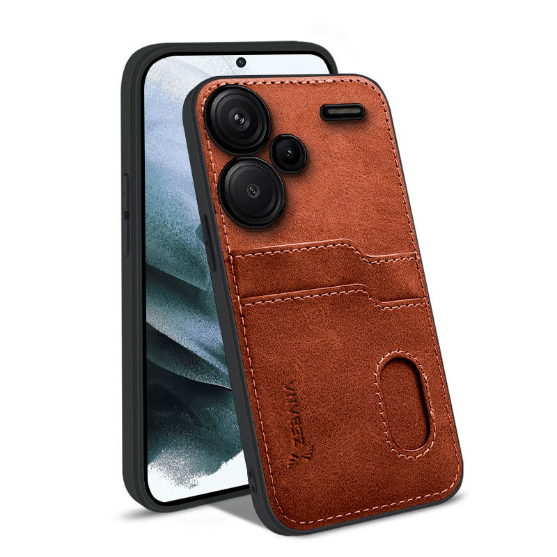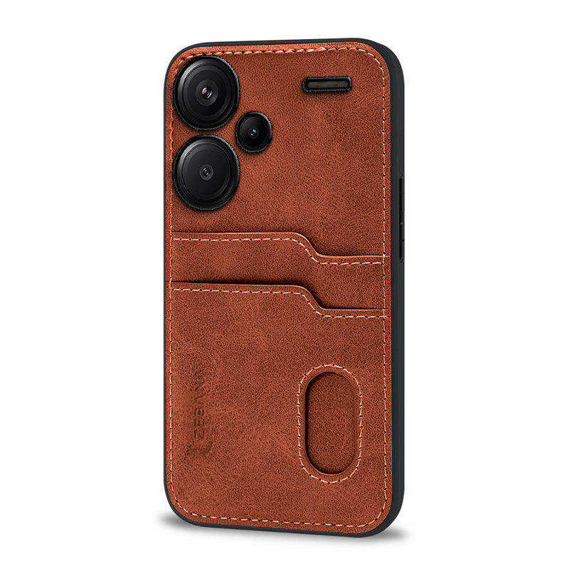 Xiaomi - Redmi Note 13 Pro Plus 5G Zebana Kartlıklı Lüx Deri Kılıf - Kahverengi